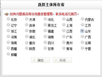 2、點擊右下角,找回備案密碼,選擇你所在地區,這里我舉例的是我們山東省境內的網站備案密碼找回: