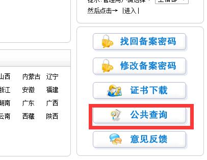 如果不知道備案許可證號,在工信部備案首頁,右下角-公共查詢--輸入公司相關信息就可以獲取到,找回備案信息